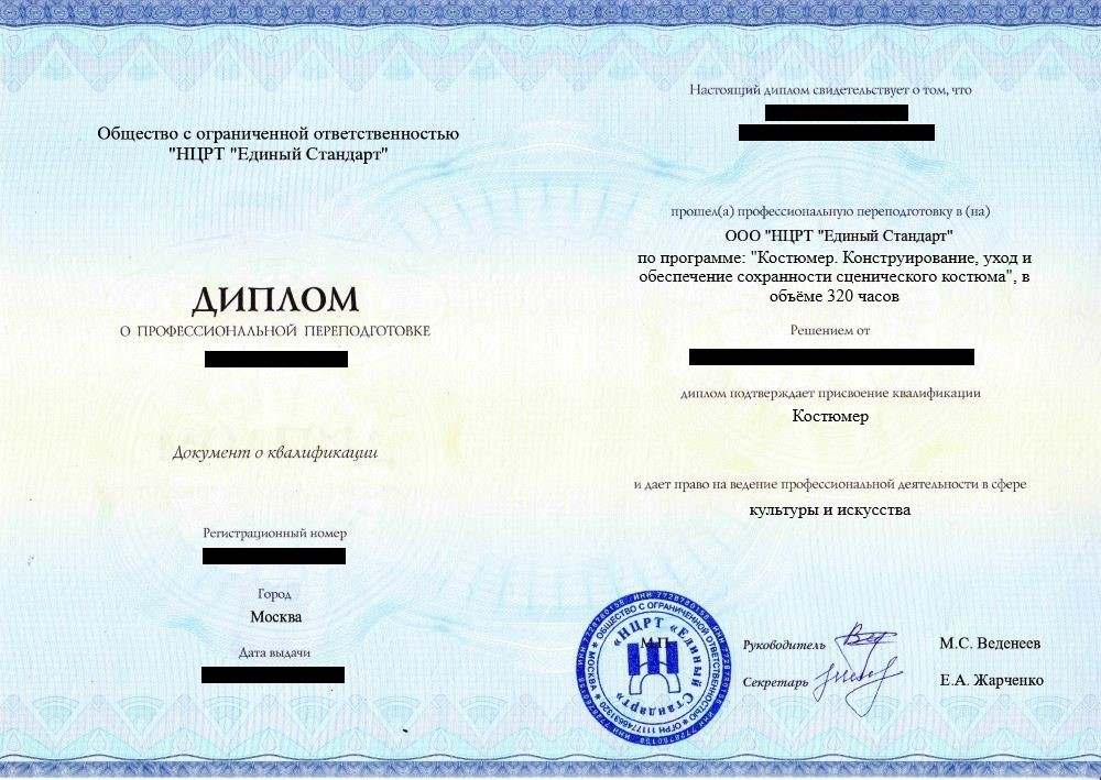 • «Костюмер» с правом ведения профессиональной деятельности в сфере культуры и искусства