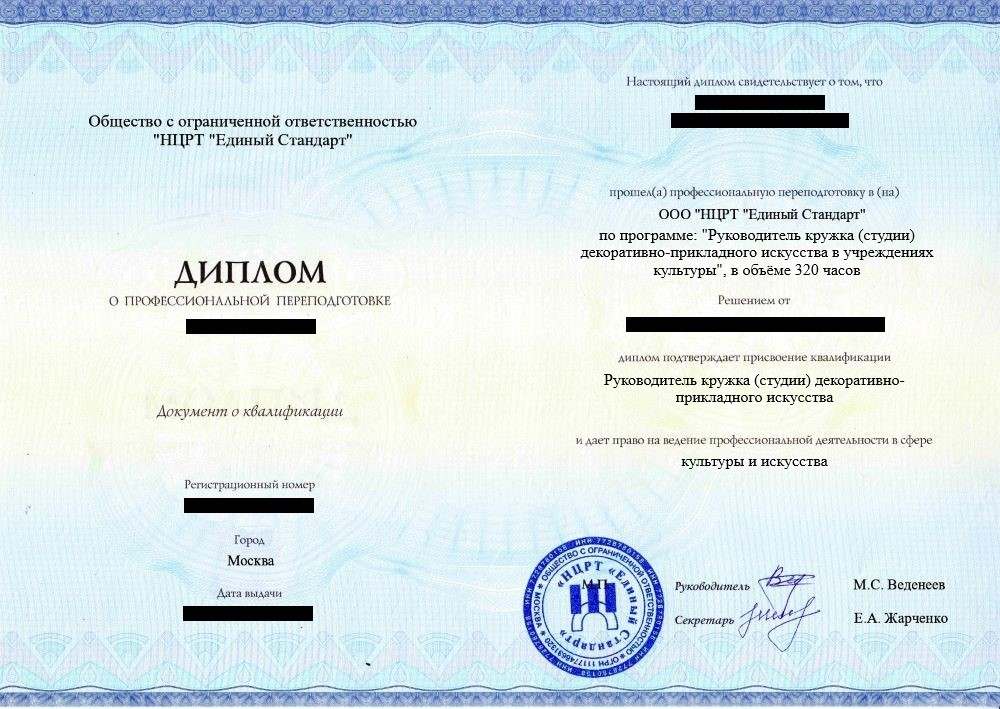 «Руководитель кружка (студии) декоративно-прикладного искусства в учреждениях культуры»