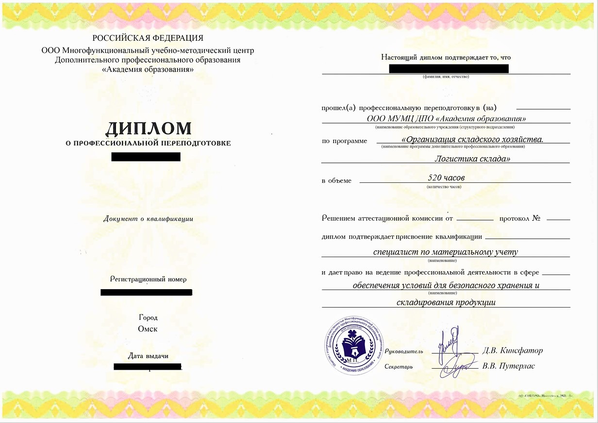 - Диплом о профессиональной переподготовке установленного государством образца. Срок действия: бессрочно